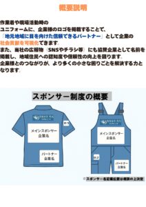 また、地元の企業様にあっては社名を共に背負わせて頂き、案件紹介などの広告宣伝も行わせて頂きたいと思います。