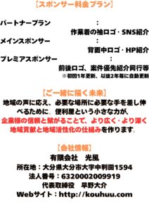 まずは地元大分を支える力となるため皆さんのお力を光風に分けて頂きたいと思っております。