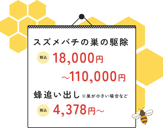 あります。蜂の巣ができる場所は、蜂にとって巣を作りやすい場所。駆除のやり方次第では、再発する場合もございます。当社では1年以内であれば、無料で対応しておりますので、万が一再発した際は、遠慮なくご連絡くださいませ。